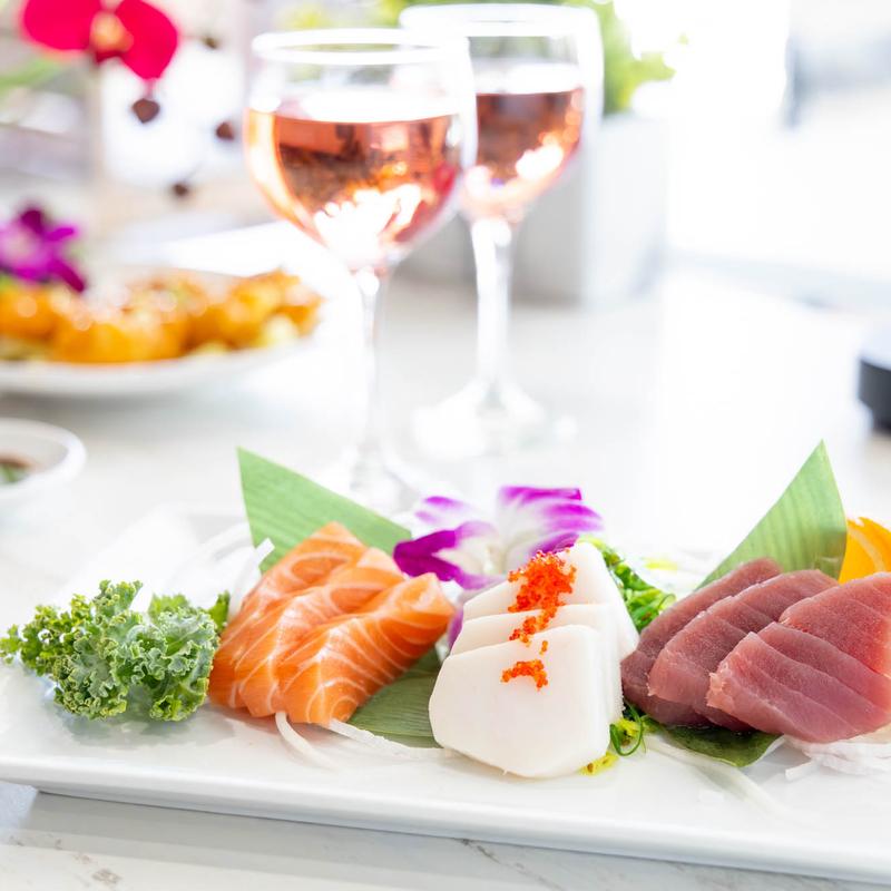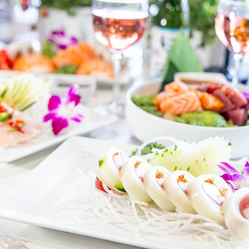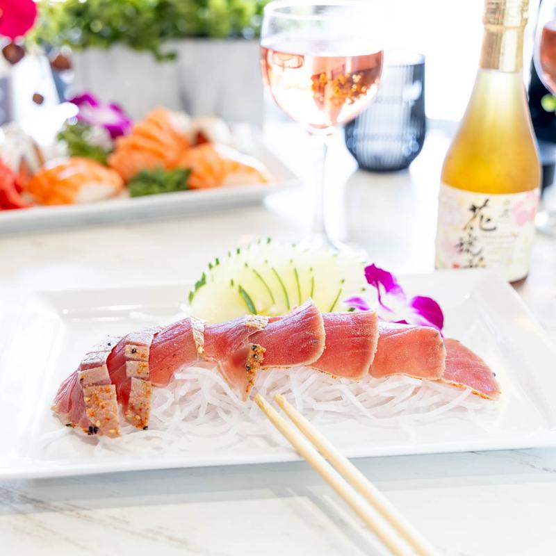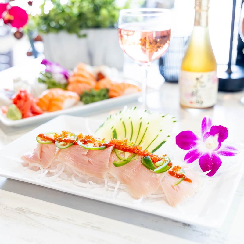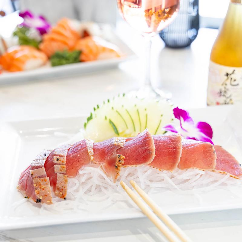 Diced tuna served over shredded daikon, topped with avocado,…